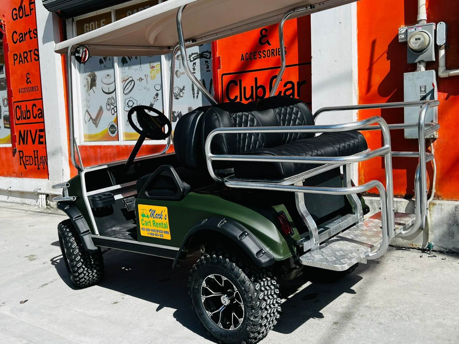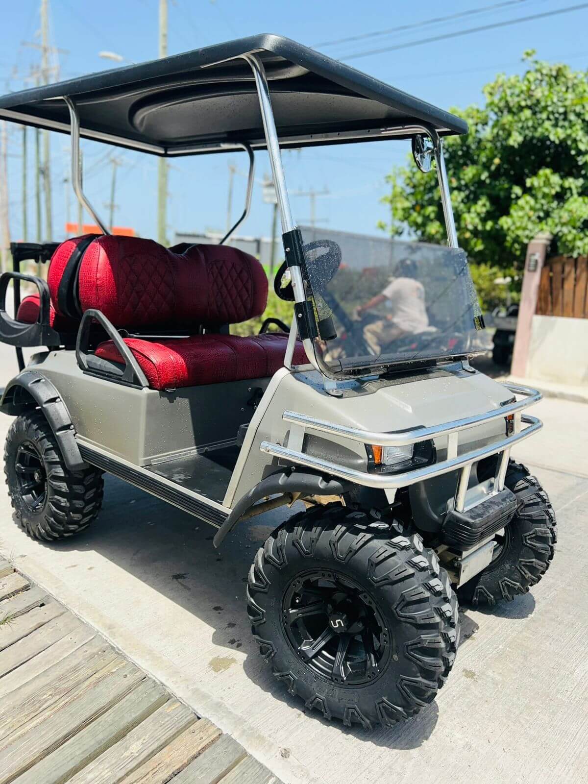 Take a closer look at some of the high-quality golf carts available in our rental fleet. At Mark’s Golf Cart Rentals in San Pedro, Ambergris Caye, Belize, we pride ourselves on offering well-maintained, reliable, and comfortable golf carts to make your island travel easy and enjoyable.